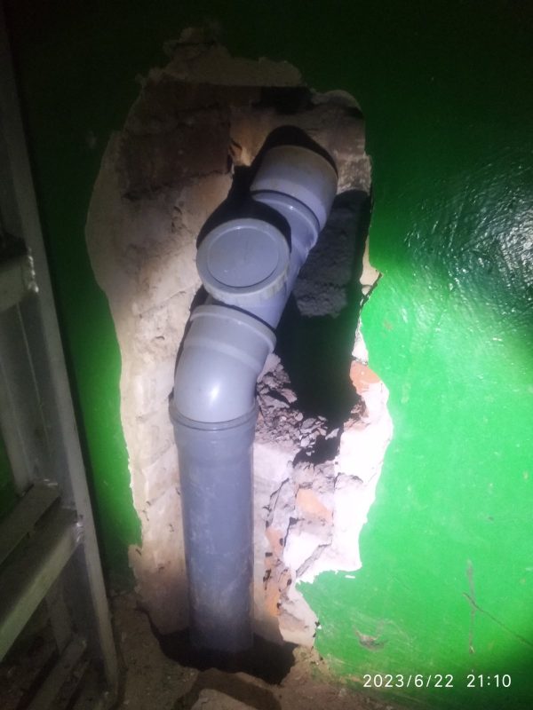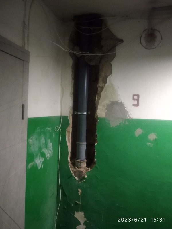 21.06.23 працівники ТОВ ЖЕО демонтували стару та змонтували нову трубу частини зливової каналізації між 9-м та технічним поверхом, загальною довжиною 2,5 м.